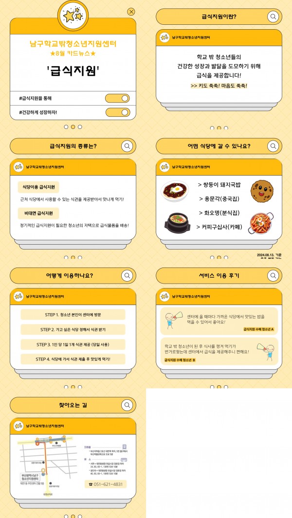 학교밖) 8월 카드뉴스 페이지 정보 작성자 최고관리자 작성일24-08-13 17:36 조회102회 댓글0건 이전글 다음글 답변 목록 본문 남구학교밖청소년지원센터 8월 카드뉴스입니다! 문의사항은 051-621-4831로 전화주세요:) 댓글목록 등록된 댓글이 없습니다. 이전글 다음글 답변 목록