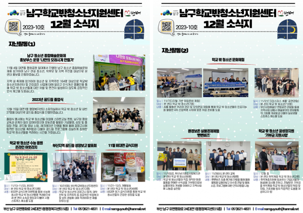 12월 소식지 페이지 정보 작성자 최고관리자 작성일24-01-02 10:57 조회150회 댓글0건 이전글 다음글 답변 목록 본문 남구청소년상담복지센터·남구학교밖청소년지원센터 12월 소식입니다:) 댓글목록 등록된 댓글이 없습니다. 이전글 다음글 답변 목록