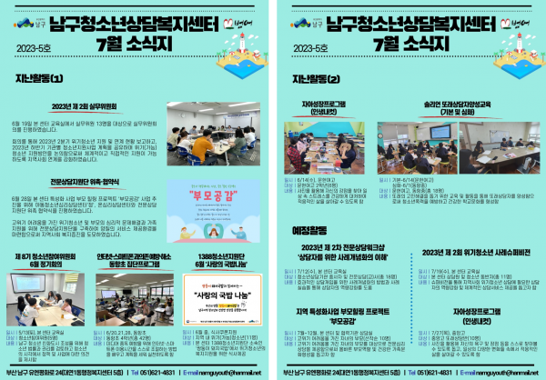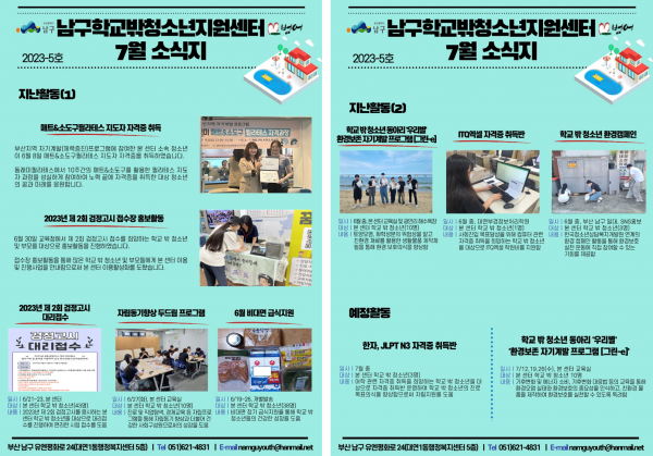 7월 소식지 페이지 정보 작성자 최고관리자 작성일23-07-12 14:01 조회252회 댓글0건 이전글 다음글 답변 목록 본문 남구청소년상담복지센터·남구학교밖청소년지원센터 7월 소식입니다:) 댓글목록 등록된 댓글이 없습니다. 이전글 다음글 답변 목록