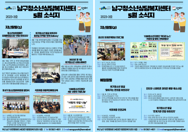 5월 소식지 페이지 정보 작성자 최고관리자 작성일23-05-10 17:56 조회358회 댓글0건 이전글 다음글 답변 목록 본문 남구청소년상담복지센터·남구학교밖청소년지원센터 5월 소식입니다:) 댓글목록 등록된 댓글이 없습니다. 이전글 다음글 답변 목록