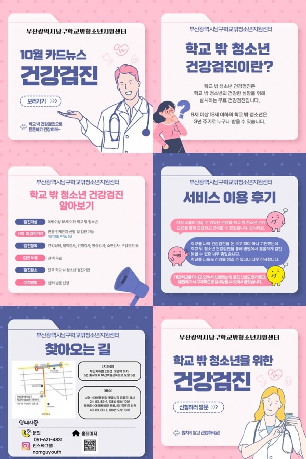 이번 10월 카드뉴스 주제는 학교 밖 청소년을 위한 '건강검진' 입니다 ~!