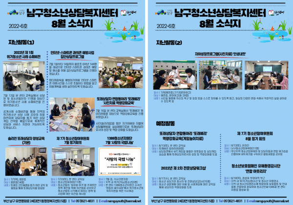 8월 소식지 페이지 정보 작성자 최고관리자 작성일22-08-09 15:39 조회780회 댓글0건 이전글 다음글 답변 목록 본문 남구청소년상담복지센터·남구꿈드림 8월 소식입니다:) 댓글목록 등록된 댓글이 없습니다. 이전글 다음글 답변 목록
