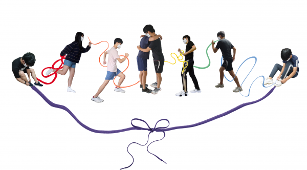 코로나19로 인해 소원해졌거나 여러 가지 이유로 멀어졌던 또래들이 다시 관계를 회복하게 된다는 의미의 '다시 이음' 챌린지를 주제로 준비하였으며, 사회적 거리두기로 인해 비대면 온라인 화상회의를 통해서 의견을 나누고, 각자 집에서 촬영한 사진을 모아 포토샵으로 완성된 작품입니다^^