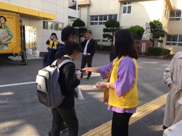 등교시간에 맞춰 찾아가는 아웃리치로 청소년의 건강한 아침을 위한 주먹밥을 배부함.
