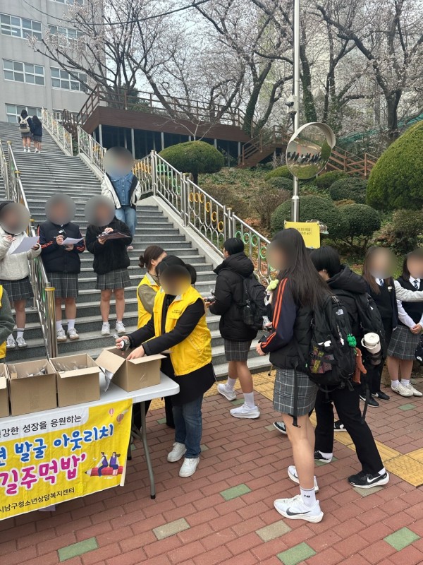 내용: 등굣길에 아침식사 주먹밥을 제공하고 본 센터 홍보를 통해 청소년들의 건강한 성장을 돕고 위기(가능)청소년을 적극적으로 발굴함