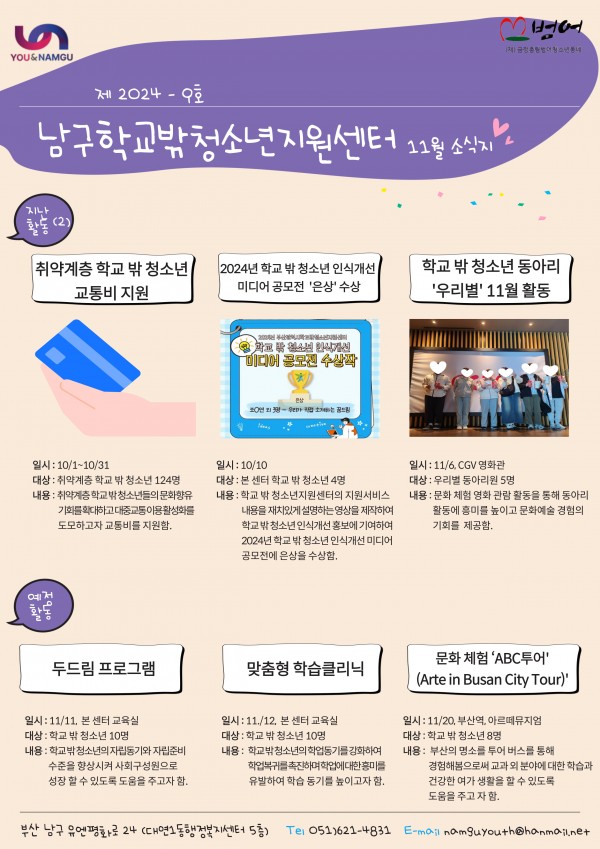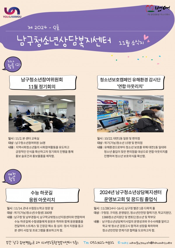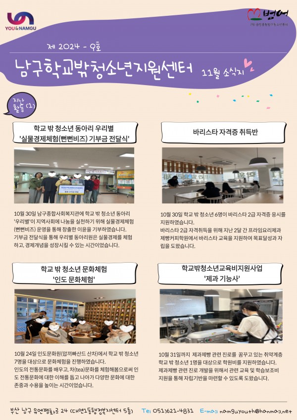 11월 소식지 페이지 정보 작성자 최고관리자 작성일24-11-07 15:52 조회86회 댓글0건 이전글 다음글 답변 목록 본문 11월 소식지 입니다~! 댓글목록 등록된 댓글이 없습니다. 이전글 다음글 답변 목록