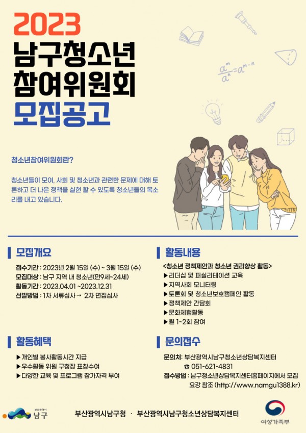제8기 부산시 남구 청소년참여위원회 위원 모집