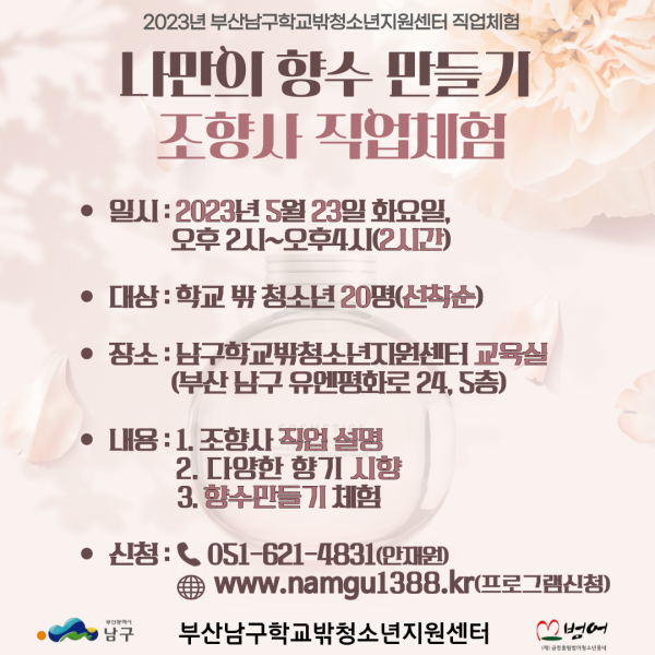 남구학교밖청소년지원센터 조향사 직업체험 프로그램 참여자 모집