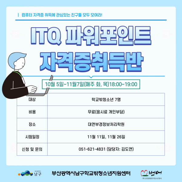 남구학교밖청소년지원센터 자격증 취득반(ITQ파워포인트) 인원 모집