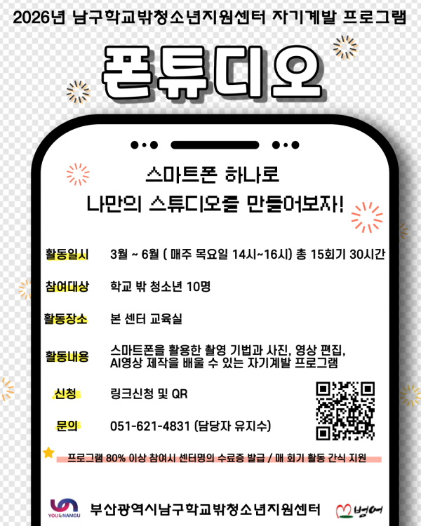2026 남구학교밖청소년 자기계발 프로그램 '폰튜디오' 참여자 모집