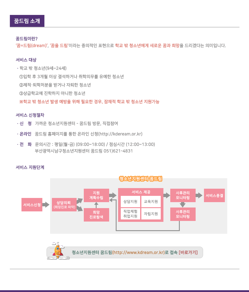 HOME > 꿈드림 > 소개 및 신청안내