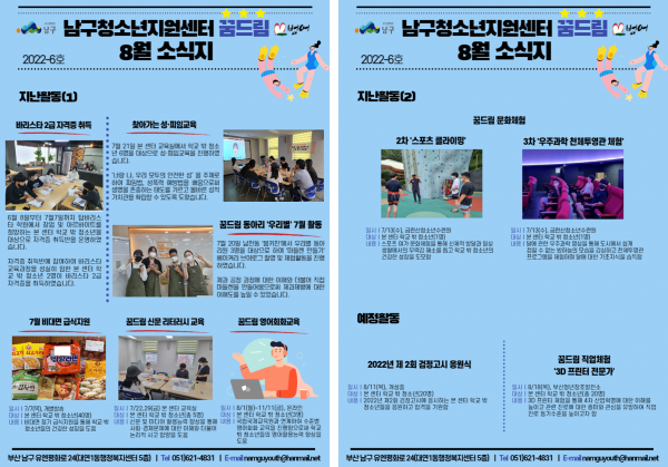 8월 소식지 페이지 정보 작성자 최고관리자 작성일22-08-09 15:39 조회783회 댓글0건 이전글 다음글 답변 목록 본문 남구청소년상담복지센터·남구꿈드림 8월 소식입니다:) 댓글목록 등록된 댓글이 없습니다. 이전글 다음글 답변 목록
