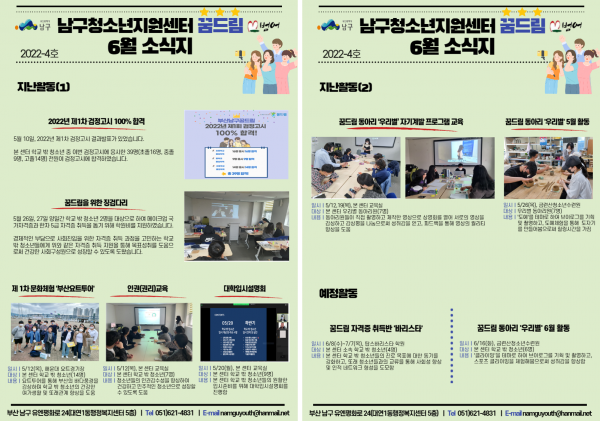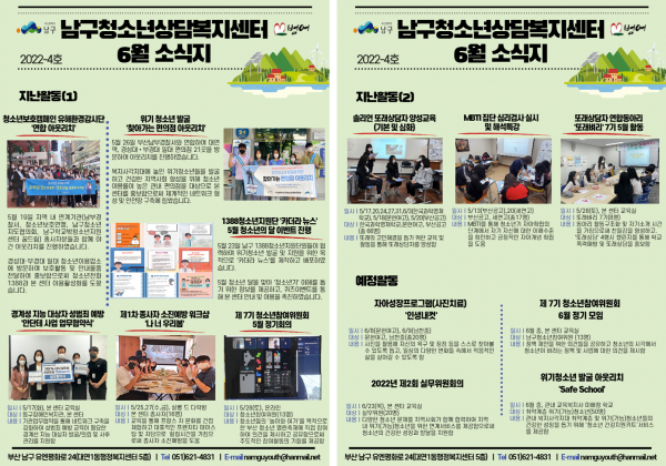 6월 소식지 페이지 정보 작성자 최고관리자 작성일22-06-29 21:01 조회831회 댓글0건 이전글 다음글 답변 목록 본문 남구청소년상담복지센터·남구꿈드림 6월 소식입니다:) 댓글목록 등록된 댓글이 없습니다. 이전글 다음글 답변 목록