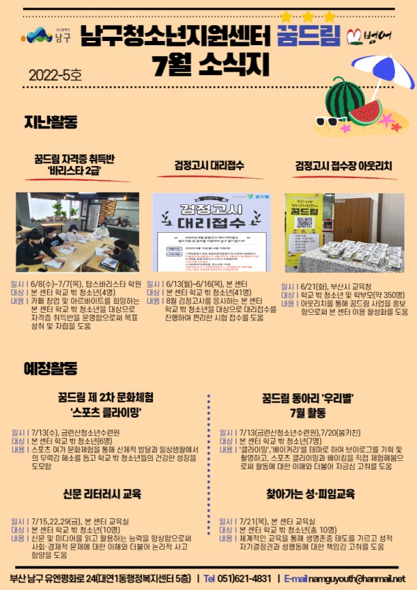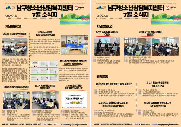 7월 소식지 페이지 정보 작성자 최고관리자 작성일22-07-06 11:38 조회813회 댓글0건 이전글 다음글 답변 목록 본문 남구청소년상담복지센터·남구꿈드림 7월 소식입니다:) 댓글목록 등록된 댓글이 없습니다. 이전글 다음글 답변 목록