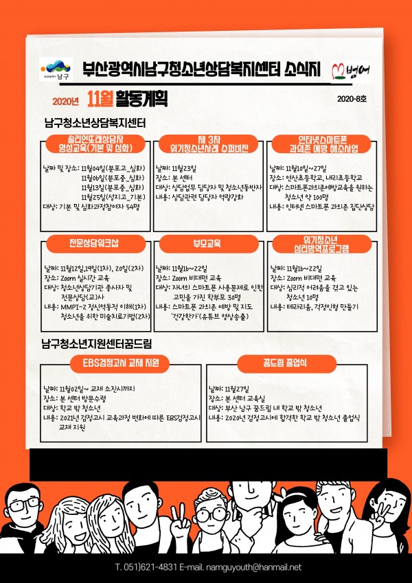 11월 소식지 페이지 정보 작성자 최고관리자 작성일20-11-06 13:53 조회2,505회 댓글0건 이전글 다음글 답변 목록 본문 남구청소년상담복지센터, 꿈드림 11월 소식지 입니다~^^ 댓글목록 등록된 댓글이 없습니다. 이전글 다음글 답변 목록