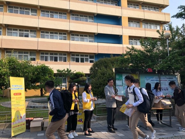 등교시간에 맞춰 찾아가는 아웃리치로 청소년의 건강한 아침을 위한 주먹밥을 배부함.