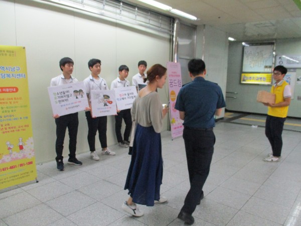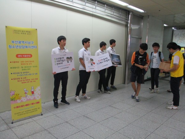 경성대부경대역에서 남부경찰서와 대양전자통신고등학교 태권도부원들과 함께 아웃리치를 진행하였습니다.