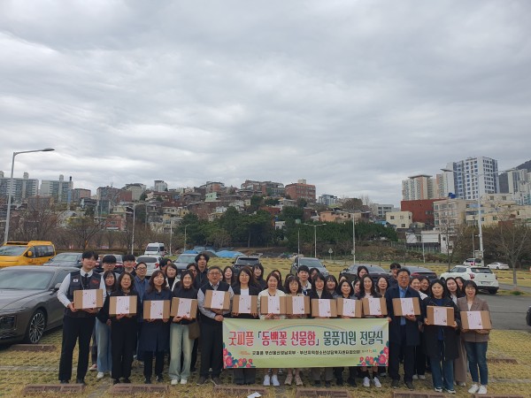 ❍ 내용 : 지역 취약계층 여성청소년 지원을 위한 '굿피플 동백꽃 선물함 물품지원 전달식' 진행