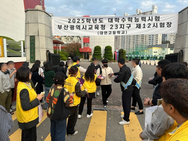 내용: - 수험생 청소년들에게 응원과 격려와 함께 홍보물품을 전달하여 대학수학능력시험 준비로 수험생 청소년들의 쌓였던 스트레스와 긴장감 해소를 도움
