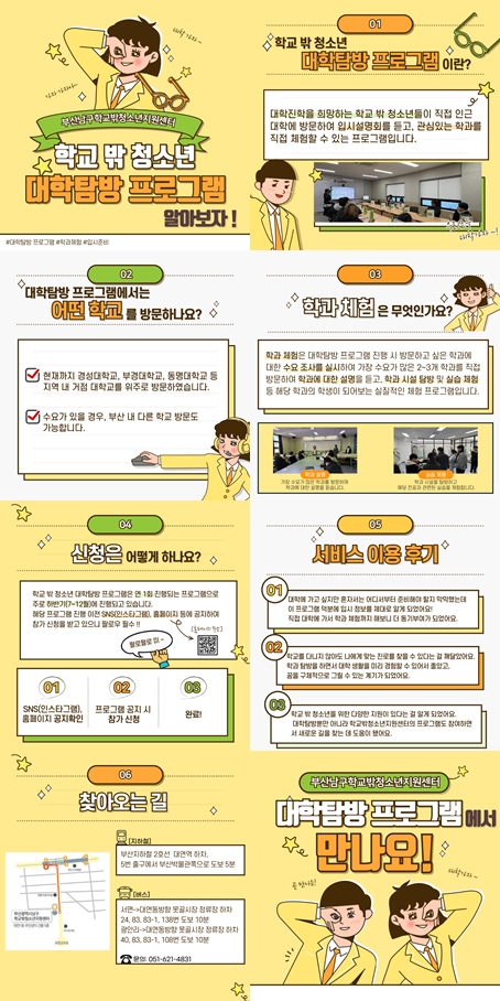 이번 1월 카드뉴스 주제는 학교 밖 청소년을 위한 '대학탐방 프로그램' 입니다 ~!