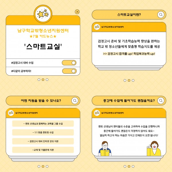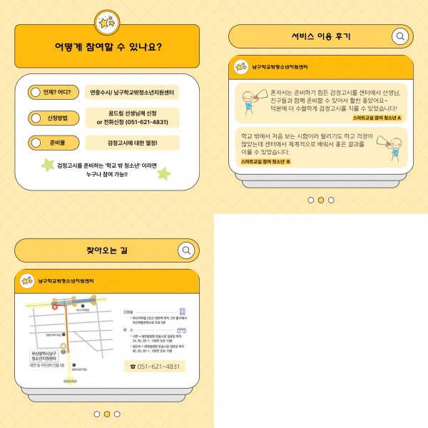 학교밖) 7월 카드뉴스 페이지 정보 작성자 최고관리자 작성일24-07-08 09:50 조회198회 댓글0건 이전글 다음글 답변 목록 본문 남구학교밖청소년지원센터 7월 카드뉴스입니다! 문의사항은 051-621-4831로 전화주세요:) 댓글목록 등록된 댓글이 없습니다. 이전글 다음글 답변 목록