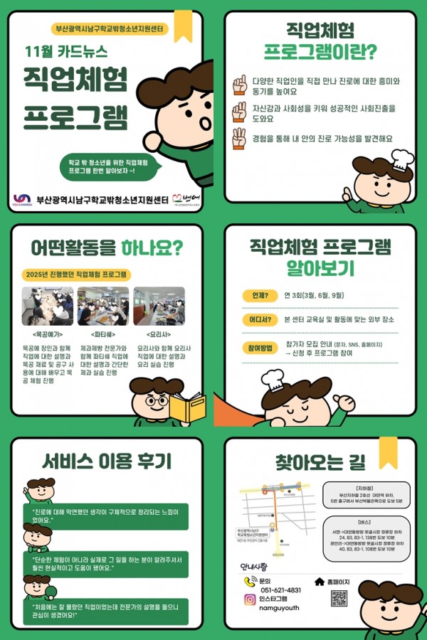 안녕하세요 ~ 남구학교밖청소년지원센터 11월 카드뉴스입니다!