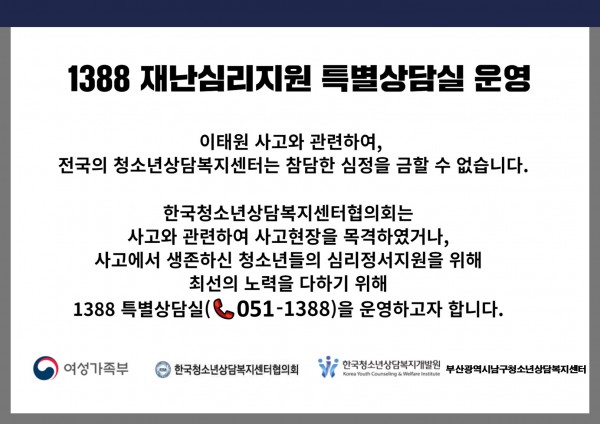 1388 재난심리지원 특별상담실 운영