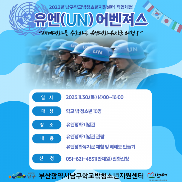 2023년 남구학교밖청소년지원센터 직업체험(유엔어벤져스) 프로그램 참여자 모집