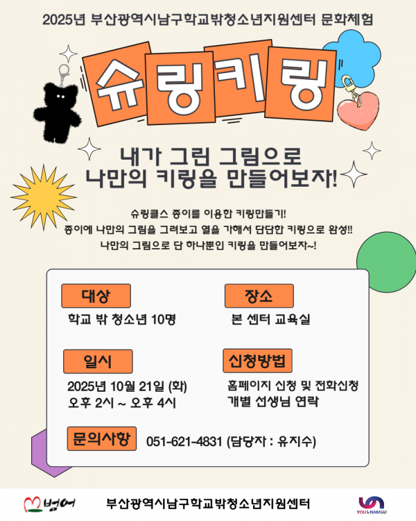 학교밖청소년 지원센터 문화체험 프로그램 '슈링키링' 참여 청소년 모집